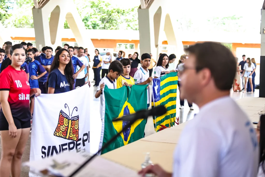 A cerimônia teve início com o tradicional desfile das bandeiras, com destaque para os pavilhões do Brasil, do Piauí e do SINEPE-PI, simbolizando o respeito à pátria, à identidade regional e à união das escolas participantes. Em seguida, todas as instituições marcaram presença com a entrada de seus alunos e atletas, compondo um cenário vibrante e repleto de entusiasmo.